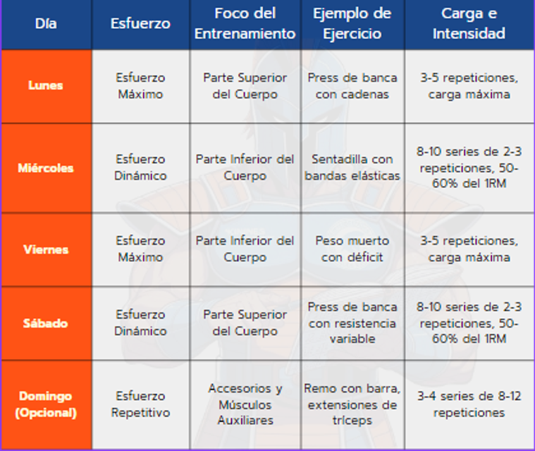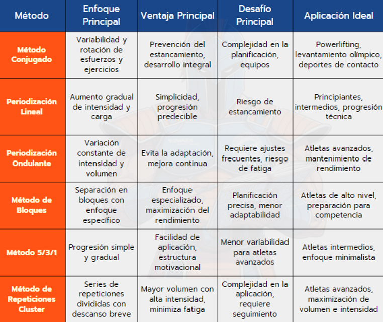 En el entrenamiento de la fuerza —y particularmente en disciplinas como el powerlifting— el método conjugado permite: